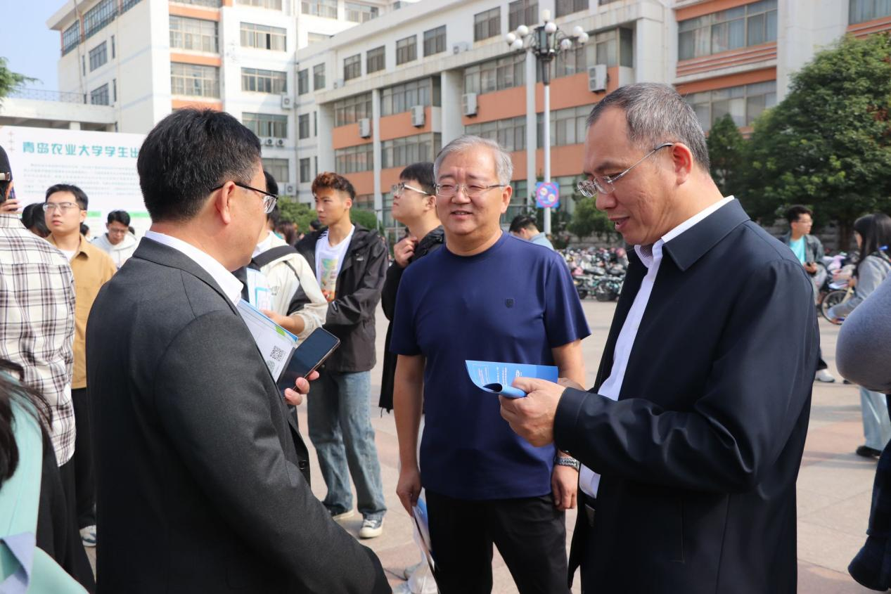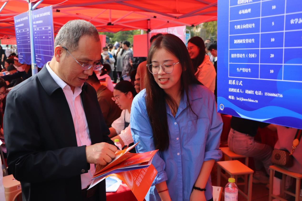双选会现场,韩强对到场的企业代表和各界来宾表示热烈的欢迎,并与山东中农联合生物科技股份有限公司、青岛康乔药业集团有限公司、青岛苏贝尔作物营养有限公司等企业进行了深入的沟通。他详细了解了企业的招聘岗位、招聘要求、薪资待遇等方面的情况,同时,他鼓励学生不忘初心、脚踏实地,充分发挥专业优势,注重理论与实践相结合,全方位了解用人单位的需求变化,紧抓机遇落实就业。