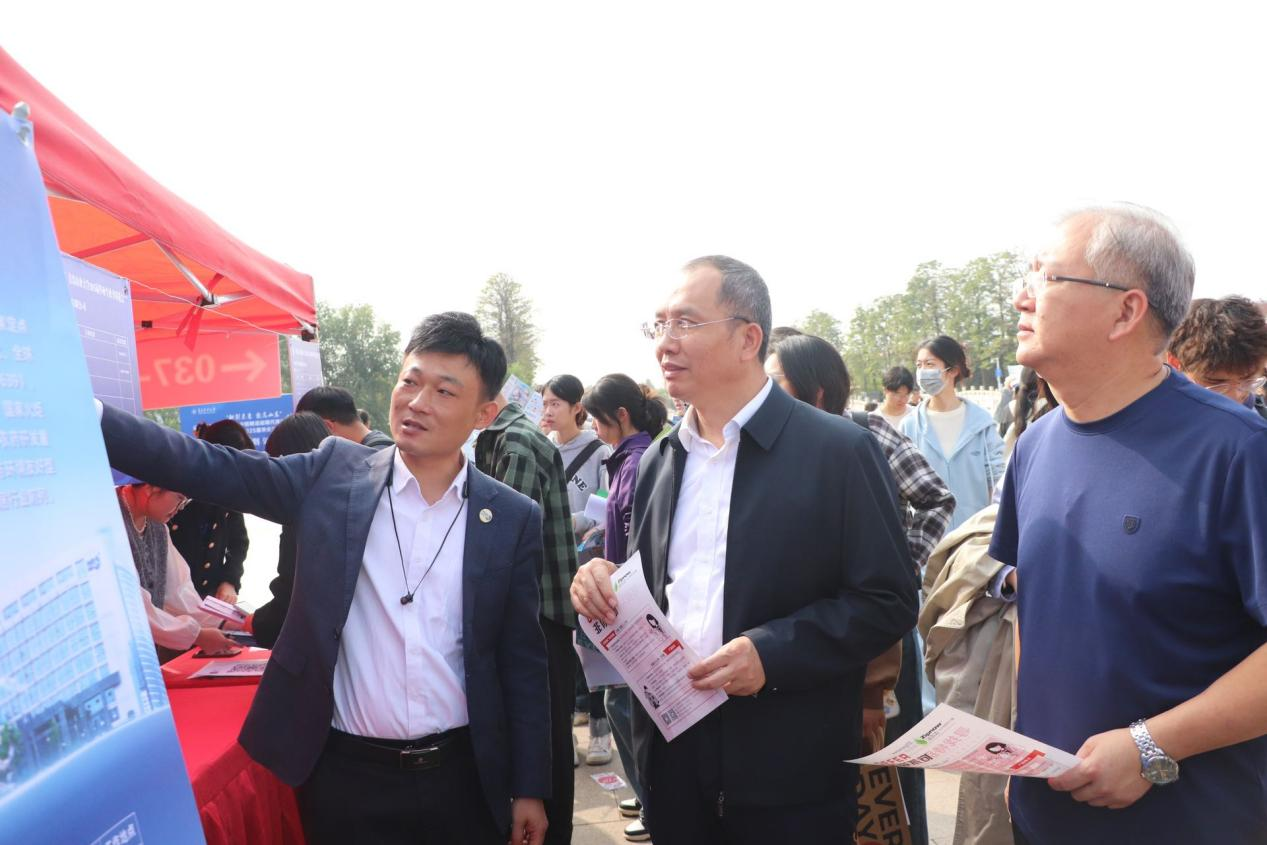 10月11日,WilliamHill中文在虹子广场举办山东省高校毕业生集中招聘活动现代高效农业产业专场暨WilliamHill中文2025届毕业生秋季双选会。学院党委书记韩强,党委副书记、副院长李军来到招聘会现场与用人单位和毕业生亲切交流,学院辅导员、班主任来到招聘会开展访企拓岗,加强校企联系对接。