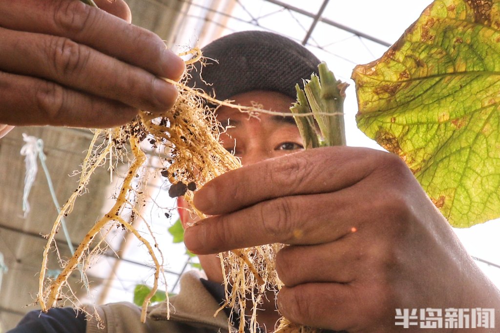 “受害比较重的还是保护地的一些蔬菜,像黄瓜、西瓜、甜瓜、番茄等这些都是比较敏感的作物,如果不防治的话造成的损失可能高达30%~40%,甚至有可能造成甜瓜、西瓜等作物的绝收。现在根结线虫病的发生非常普遍,在山东省各个设施栽培的地区,特别是大棚蔬菜上都有发生。目前呢防治的主要方法,主要是药剂防治,再就是用薄膜覆盖田地进行日晒闷棚,用太阳能消毒,这个技术目前在寿光等地区推广的比较普遍一些,在青岛这边有些种植户呢也在采用这种技术,它的效果是非常好的。”