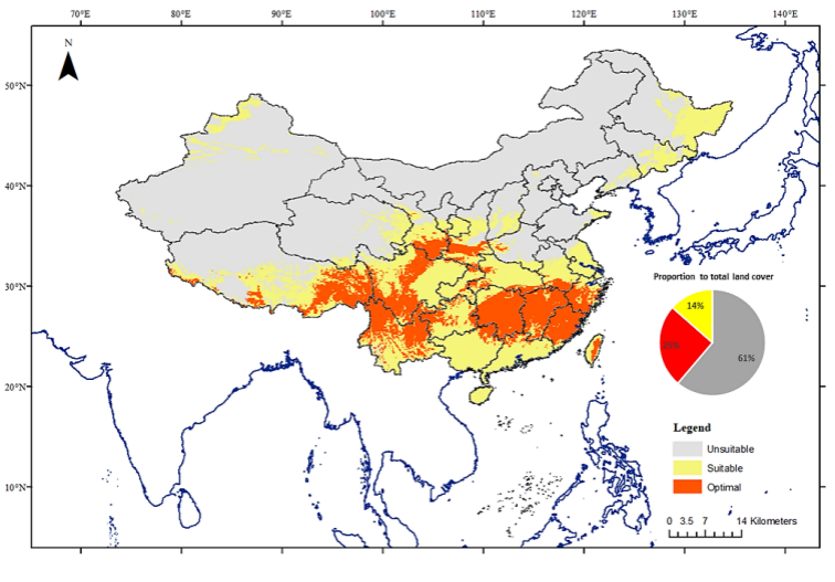 参考文献:He Y, Wang G, Ren Y, Gao S, Mckirdy SJ, Chu D. 2024. Maxent Modelling Combined with Fuzzy Logic Provides New Insights into Predicting the Distribution of Potato Cyst Nematodes with Limited Data. Computers and Electronics in Agriculture.