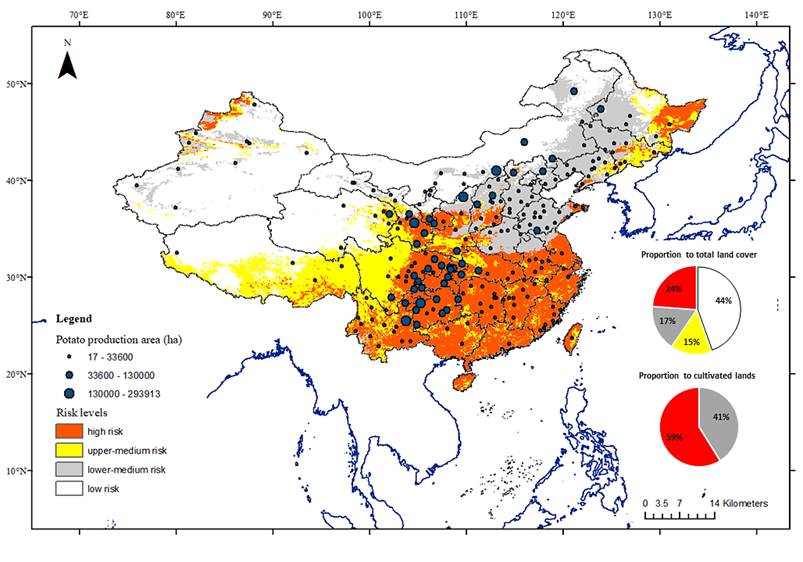 图2. 基于耕地和马铃薯种植区数据分析马铃薯孢囊线虫在中国的入侵风险