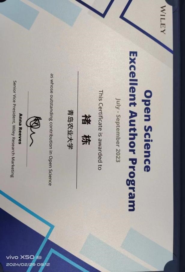 为助力《国家“十四五”期间人才发展规划》中关于促进基础研究科技创新的重要目标,Wiley在近年中加大了推进开放科学的步伐,以更加开放的姿态推动科学的广泛传播以促进基础科学领域的创新。为感谢中国作者在开放科学与促进科技创新中做出的巨大贡献,Wiley中国在较受中国作者认可的开放获取期刊中评选出若干位“Wiley威立中国开放科学高贡献作者”。因该论文较高的下载和引用,荣获2023年第三季度“Wiley威立中国开放科学高贡献作者”荣誉。