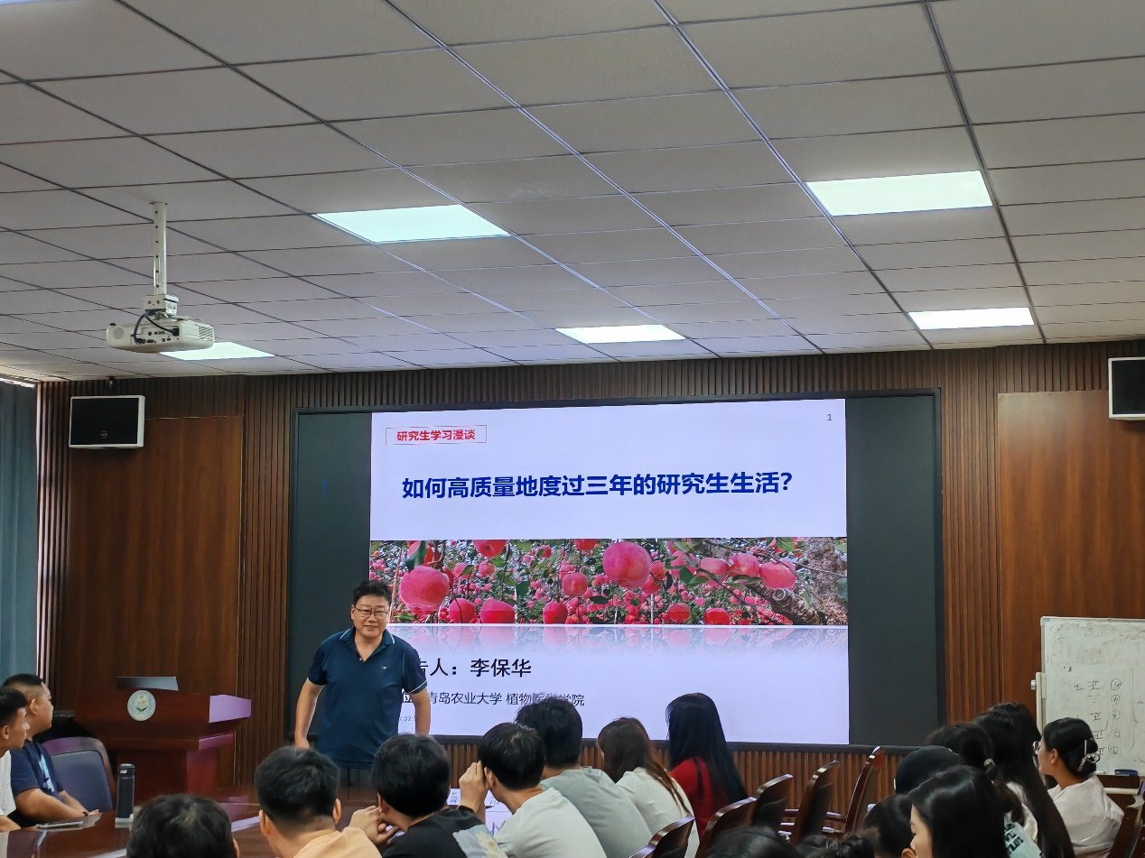 刘树生以“我是否真的应该读研、怎样读研”为题,结合自己的教学科研经历,用生动的语言、详实的案例为同学们介绍了读研对个人发展的意义,他鼓励同学们厚植爱国主义情怀,培养科学思维方法和能力,练就扎实的基本功,在科研的道路上勤学善思、厚积薄发。