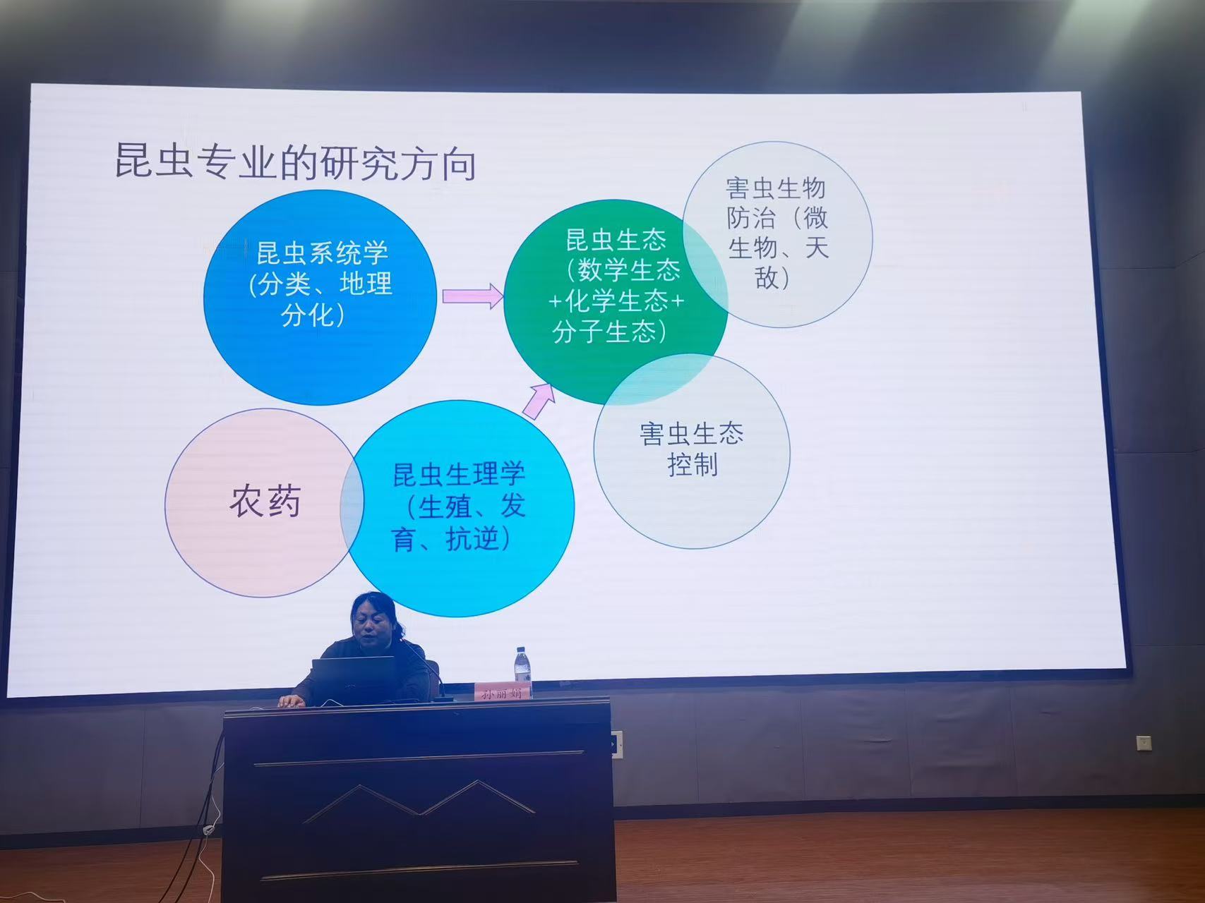 会上,李敬涛副教授、孙丽娟副教授和张清明教授分别就植物病理学、昆虫学、农药学的师资队伍、研究方向、团队建设和教学课程进行详细介绍,同学们对三个学系的教学科研、威廉英国等方面取得的成就和发展状况有了更深入的了解。老师们就现场同学提出的有关问题给出详细解答,并强调作为一名农科学子要积极学习,主动探索专业知识、培养专业兴趣,激发投身科研、探索新知的热情。