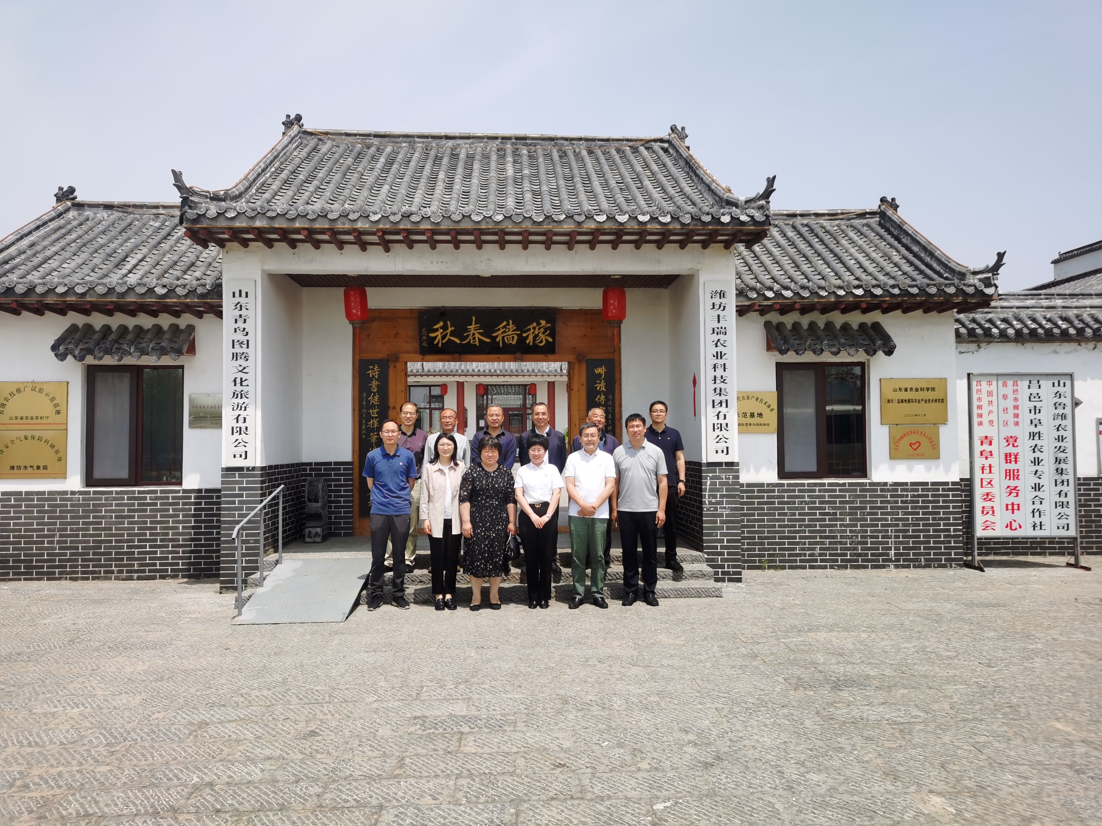 在昌邑市柳疃镇青阜村,学院领导班子成员在工作人员陪同下,参观了解了青阜村从盐碱滩变成“吨良田”的发展过程,深入学习了当地党建引领大田托管模式。青阜村通过推进“社村企共建”,实行“水技机结合”,创新“地股工叠加”,发展成为“盐碱地上的吨粮田”和乡村振兴示范区。在数字农业高效示范园,学院领导班子成员参观了潍水苗木种质资源基地、绿色生态果蔬示范基地和数字化精准种植示范基地,近距离感受了科技在现代农业发展中的重要作用。参观过程中,双方就如何推进乡村振兴和现代农业发展进行了探讨交流。