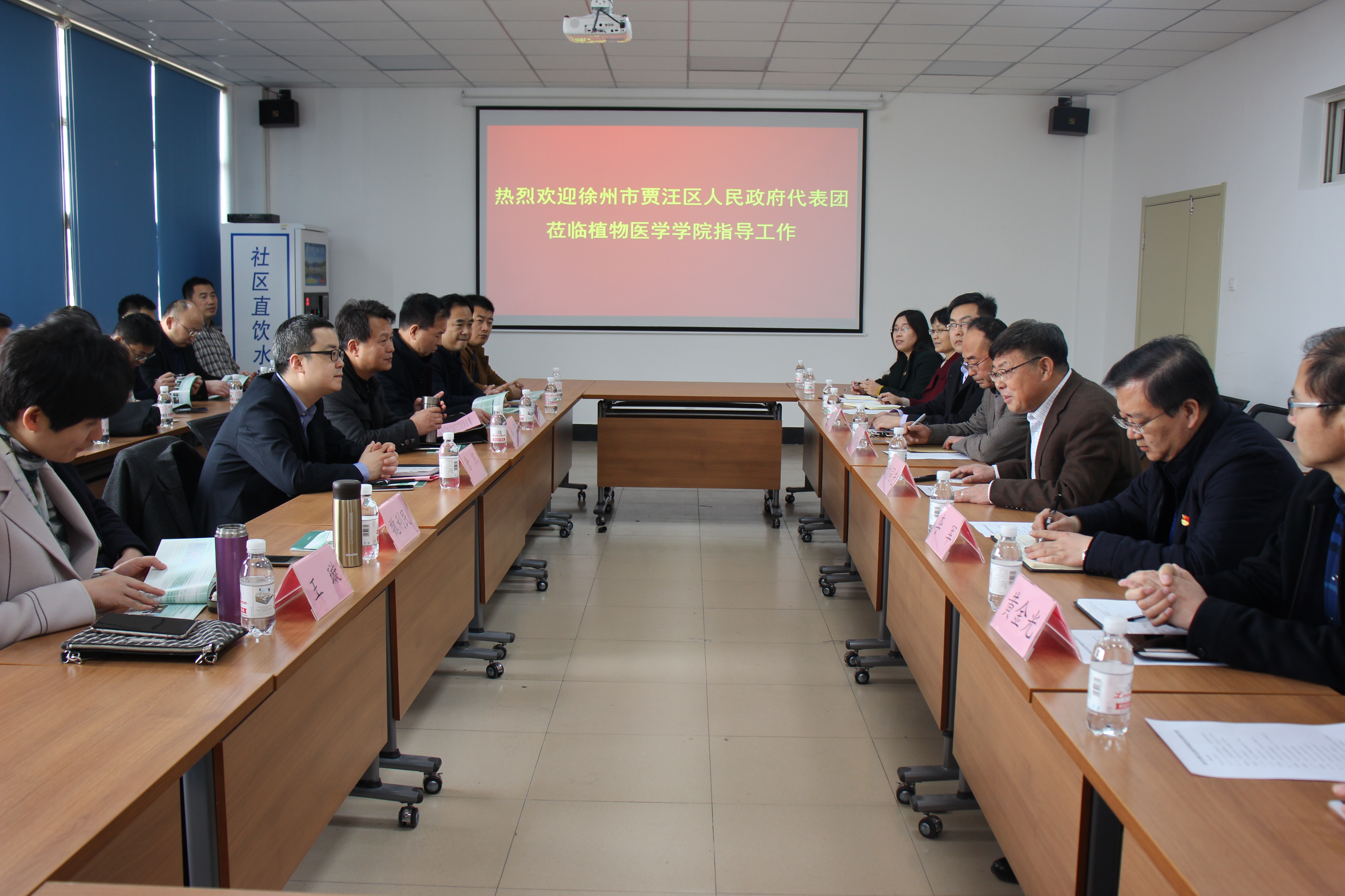 座谈会上,刘同先代表学院向来访客人表示热烈欢迎,并以“不忘初心,扬帆起航”为主题,全面展示了学院简况及发展规划、植物保护的过去与现状和学院社会服务开展情况。刘同先表示,学院将充分发挥自身的专业优势,加强对贾汪区的人才支持、科技支持和产业发展支持,希望校地进一步加强交流合作,共同为实现农业增产、农民增收和农村稳定做出积极贡献。唐凯表示希望能借助William威廉英国的学科专业、人才优势,开创校地牵手合作新局面,加深双方合作共建现代农业产业研究院,开启校地、校企合作的良好典范。