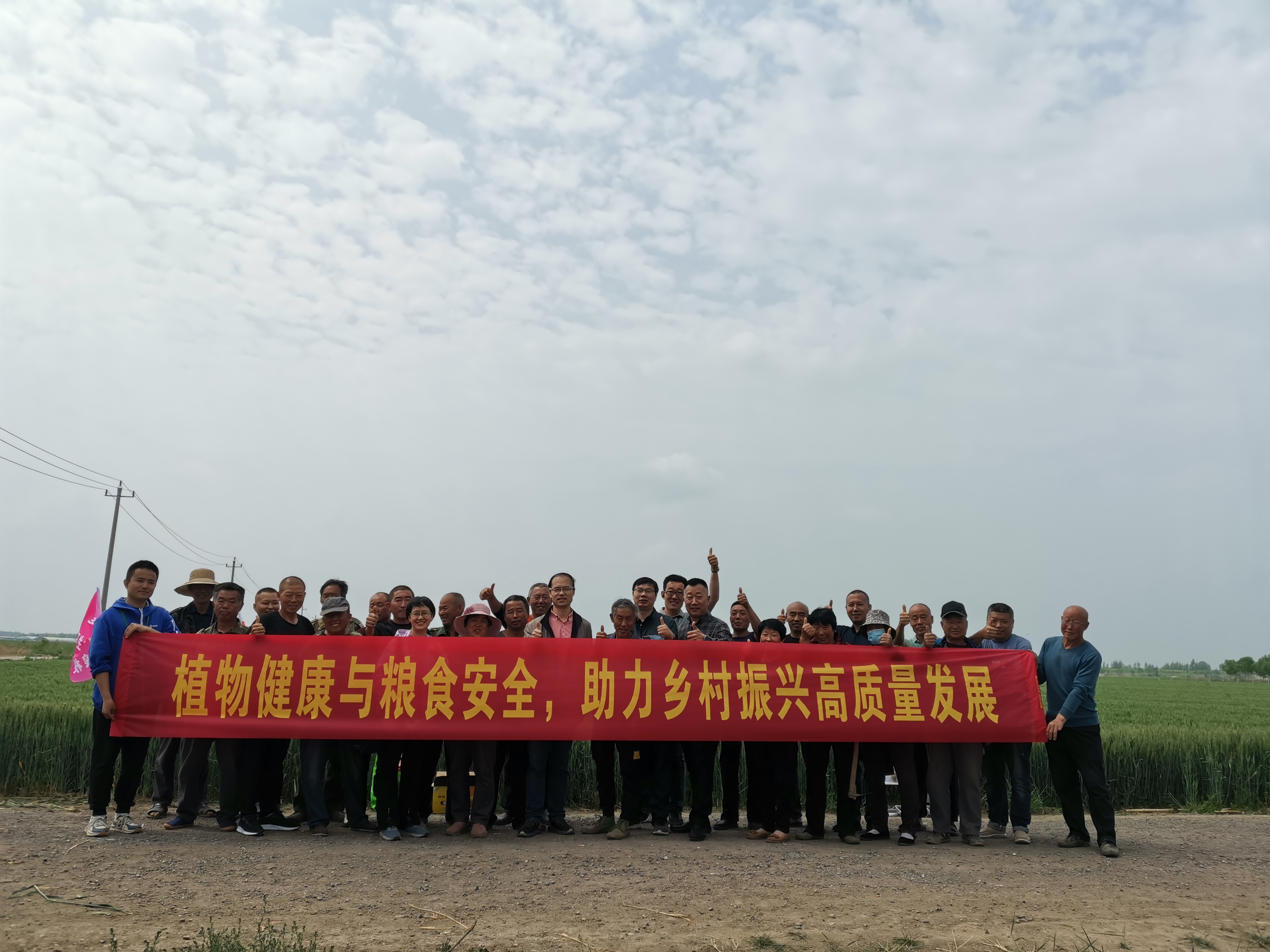 为深入贯彻落实习近平总书记在中央农村工作会议及在山东考察时的系列重要讲话精神,进一步提高保护植物健康对消除饥饿、减少贫困、保护生物多样性及推动绿色发展重要意义的认识,围绕农业高质量发展中病虫草害绿色防治等关键问题开展诊断和防治技术培训,旨在宣传植物健康保护,减轻灾害风险,守护美好家园,进一步夯实“三农”压舱石,为夺取全省夏粮小麦丰收提供科技支撑。5月12日上午,William威廉英国副院长黄金光教授带领小麦绿色防控团队成员一行3人到即墨市段泊岚镇麦戈庄小麦示范田开展“植物健康与粮食安全,助力乡村振兴高质量发展”培训指导,青岛德地得农化科技服务有限公司小麦技术方案推广员、段泊岚镇种粮大户负责人等40余人参加了活动。
