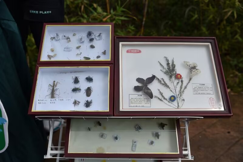 活动精心设置了标本制作、标本鉴赏和标本识别三个环节。在标本制作区,同学们在志愿者的指导下,学习如何将昆虫制作成标本。大家小心翼翼地调整蝴蝶翅膀的展开角度,认真固定甲虫的肢体姿态,现场充满了专注而热烈的氛围。移步标本鉴赏区,百余件精美的昆虫标本整齐陈列。志愿者们生动讲解着各类昆虫的特征和习性,同学们或俯身细看,或轻声讨论,不时发出感叹。"身穿花衣爱跳舞,翅膀一扇飞远处"、"小小建筑师,六角房子住"等趣味谜语吸引了不少同学参与。大家三五成群地围在标本旁,一边观察一边讨论,现场不时爆发出猜中谜底的欢呼声和掌声。此次活动,激发了同学们对昆虫学的浓厚兴趣,也进一步丰富了校园科技文化艺术节的氛围。