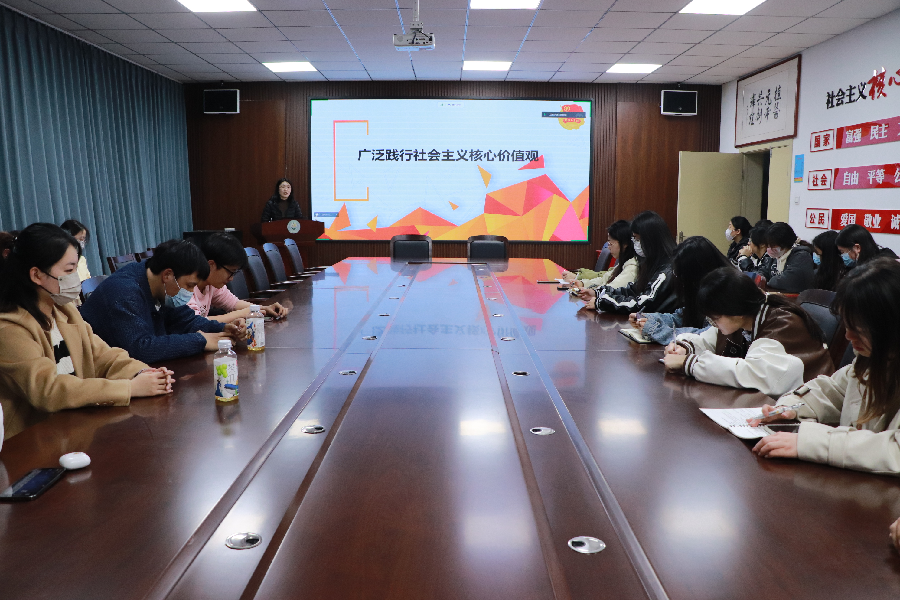 会上,张琳以《广泛践行社会主义核心价值观》为题,结合身边具体实例展开详细生动的讲解。张琳指出,核心价值观是一个民族赖以维系的精神纽带,是一个国家共同的思想道德基础,对一个民族,一个国家来说,最持久、最深层的力量是全社会共同认可的核心价值观。她表示,社会主义核心价值观是当代中国精神的集中体现和科学表达,是凝聚人心、汇聚民力的强大力量,成为当代中国坚定文化自信、建设文化强国的价值引领。