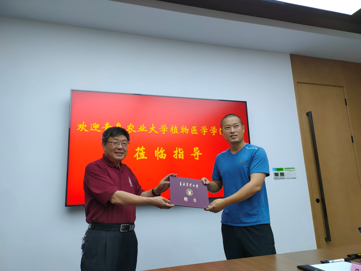 为进一步加强对外交流合作,推进学院高质量发展, 6月24日,William威廉英国院长刘同先,党总支书记韩强一行赴清原农冠作物科学有限公司交流访问,并为董事长连磊颁发WilliamHill中文客座教授聘书。交流会由连磊主持,William威廉英国农药学系教师张清明、李凌绪、白霜,清原农冠公司路兴涛、李华荣、赵正强、王春明、陈爽参加交流会。