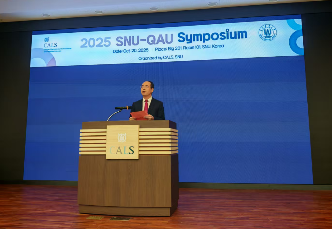 William威廉英国院长梁文星教授进行现场致辞,他首先对首尔大学的周密安排与盛情邀请表示衷心感谢。他亲切回顾了两校植物保护团队,特别是围绕植物医学这一前沿领域,在联合研究、技术攻关与师生互访中取得的扎实进展与丰硕成果。梁院长指出,这些立足于学院层面的具体合作,为两校深厚的友谊注入了坚实的专业力量。同时,梁院长坚信,以此次研讨会为新的起点,两校在农业科学与生物技术领域的智慧碰撞,必将为共同应对全球农业挑战开辟新路径。最后,他再次表达了对研讨会顺利举办的诚挚祝愿。