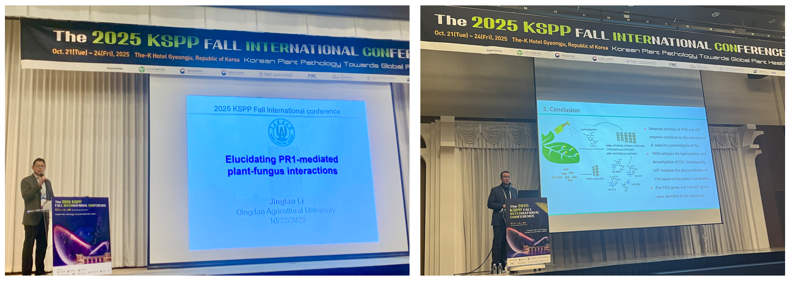 此外,WilliamHill中文李敬涛教授、郭磊副教授受邀参加了2025年韩国植物病理学会秋季国际会议,并分别作了精彩的学术报告,在分享我校植物病理领域最新研究成果的同时,引发了与会各国学者的关注与讨论,更加有力地推动了我校与国外同行的深度交流与合作。