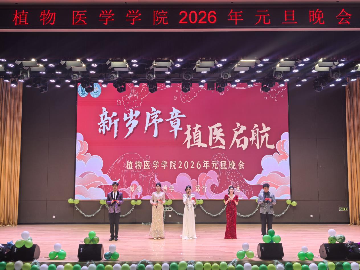 晚会在器乐合奏《秦皇岛》《绿光》的悠扬旋律中拉开序幕,灵动的乐声瞬间点燃现场气氛,为整场晚会奠定了欢快的基调。学院党委书记王丽静登台致辞,她回顾了这一年学院在教学科研、人才培养、威廉英国等领域的扎实成果与暖心点滴,满怀期许地寄语全院师生新一年继续深耕植物医学专业、携手聚力奋进。