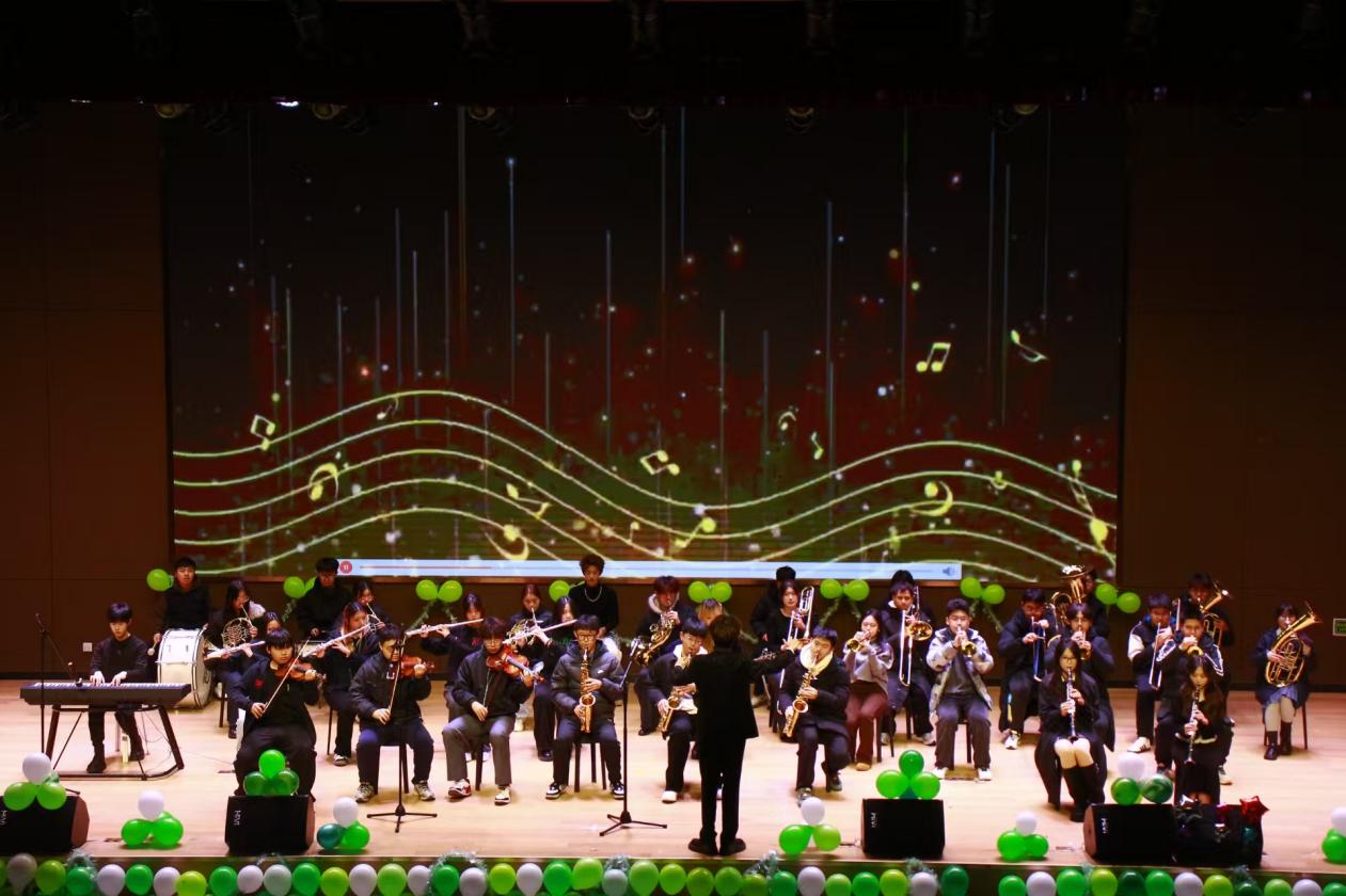第二篇章“植途求索,医伴成长” 精彩纷呈,孔雀舞、新疆舞、拉丁舞、街舞串烧轮番登场,不同舞种的碰撞融合带来强烈的视觉冲击;歌曲《简单爱》和《特别的人》唱出青春里的美好情愫;小品《领养日》以温情的故事引发共鸣;管乐《欢乐颂》的激昂演奏,更是将现场氛围推向小高潮。