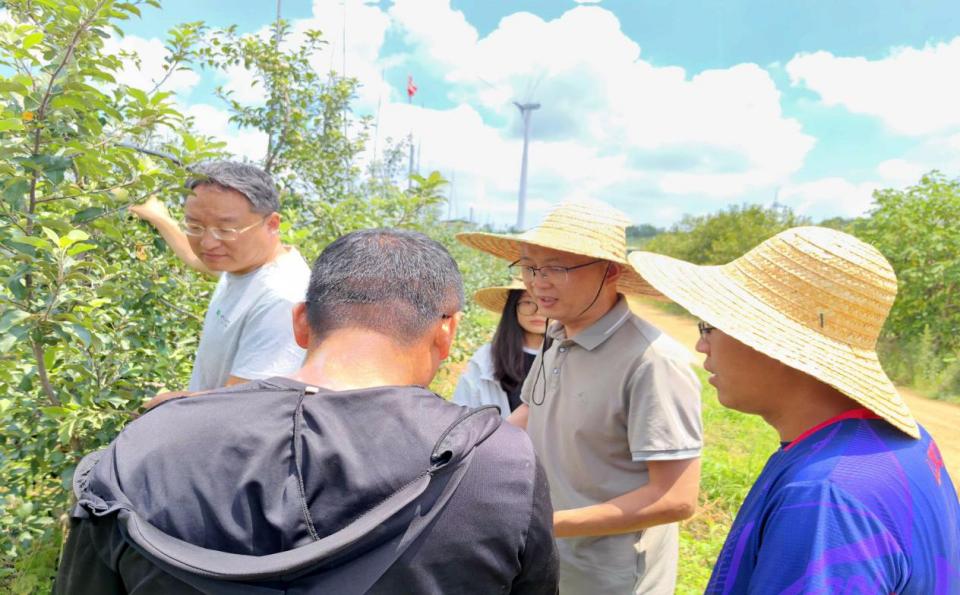 这些苦事、意外,练森教授与团队老师们都鲜少放在心上,他们的目光始终聚焦在果园的病害、手头的试验,以及因苹果病虫害满脸发愁的果农身上。很多时候,果农们带着严重的病虫害问题找上门,那满脸的愁容与期盼的眼神,都让他们深感责任重大,绝不能辜负这份信任。他们记在心里的,永远是哪个果园遭遇了什么病害,思考最多的,是苹果发病的根源,以及如何最大限度减少农民的损失。2025年暑期,海阳宇果庄园200亩苹果园遭遇病虫害侵袭,早期落叶病蔓延、桃小食心虫蛀果,果农们心急如焚。练森教授当即会同烟台多地农技人员赶赴果园。从清晨到日暮,练森教授的身影穿梭在果园的每一行果树间,汗水浸透了衣衫,裤脚沾满了泥土,却始终精神饱满。练森教授钻进果林,逐树排查病害,他抬手摘下一片边缘焦枯、布满褐斑的病叶,蹲在树下逐棵查看、仔细端详。指尖捏着染病的叶片,对着围上来的果农讲解病菌的侵染周期、高温高湿的发病诱因、不同生长期的防控要点,手把手指导果农科学用药、监测虫害。经他精准指导,果园病虫害得到有效控制,为丰收筑牢了“防护网”,用科技守护了果农的希望。在临走时,庄园负责人紧紧握着练森教授的手,激动地说:“您这一来,我们心里就有底了,今年的收成有指望了!”,他却笑着说:“帮果农解决问题,是我们每一个科研人的责任,更是继承了我们学院的优良传统。”果不其然,在秋季收成时不套袋苹果病虫果率直接从80%下降到了10%以内,好果率提升了4.5倍。而这,只是练森教授无数次田间问诊的一个缩影。作为深耕植保领域多年的专家,他始终践行“把论文写在大地上”的初心,常年奔波在烟台的果园山野间,用专业技术为果农排忧解难,用科技力量护航苹果产业高质量发展,让科技的种子在田间地头生根发芽,结出丰收的硕果。