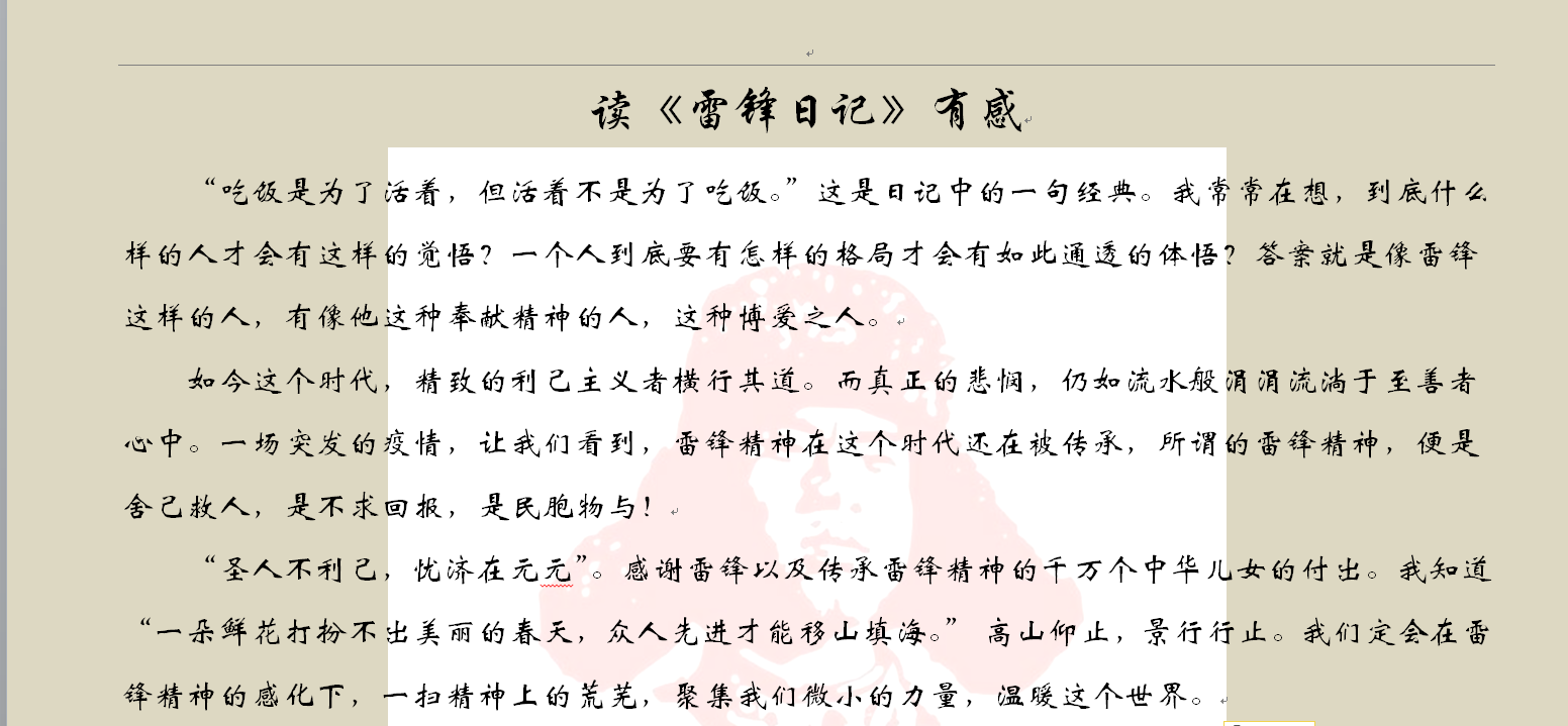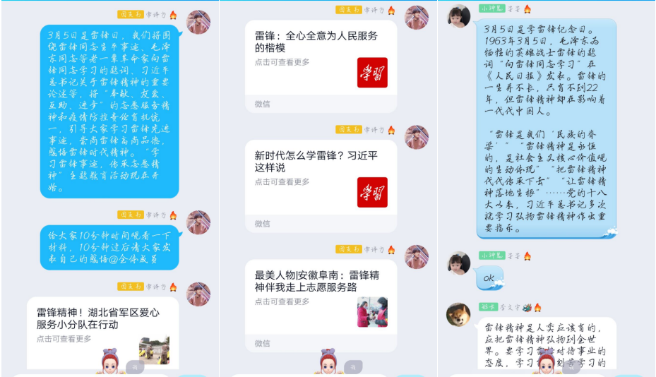 为引导当代大学生不断提高文化素养,汲取知识和能量,学院开展了重温《雷锋日记》线上读书会活动,通过重读《雷锋日记》、观看《高山下的花环》、《海棠依旧》等文学、影视作品,学习雷锋精神,体会家国情怀。活动期间,全体同学纷纷写下读后感、观后感,植物保护专业1703班刘晓莉同学写道:从《雷锋日记》到《海棠依旧》,从雷锋同志到周总理,虽然他们的职位不同,但他们都是在为人民服务,虽然我们还是学生,但我们也应当贡献出属于自己的一份力量,为人民服务。